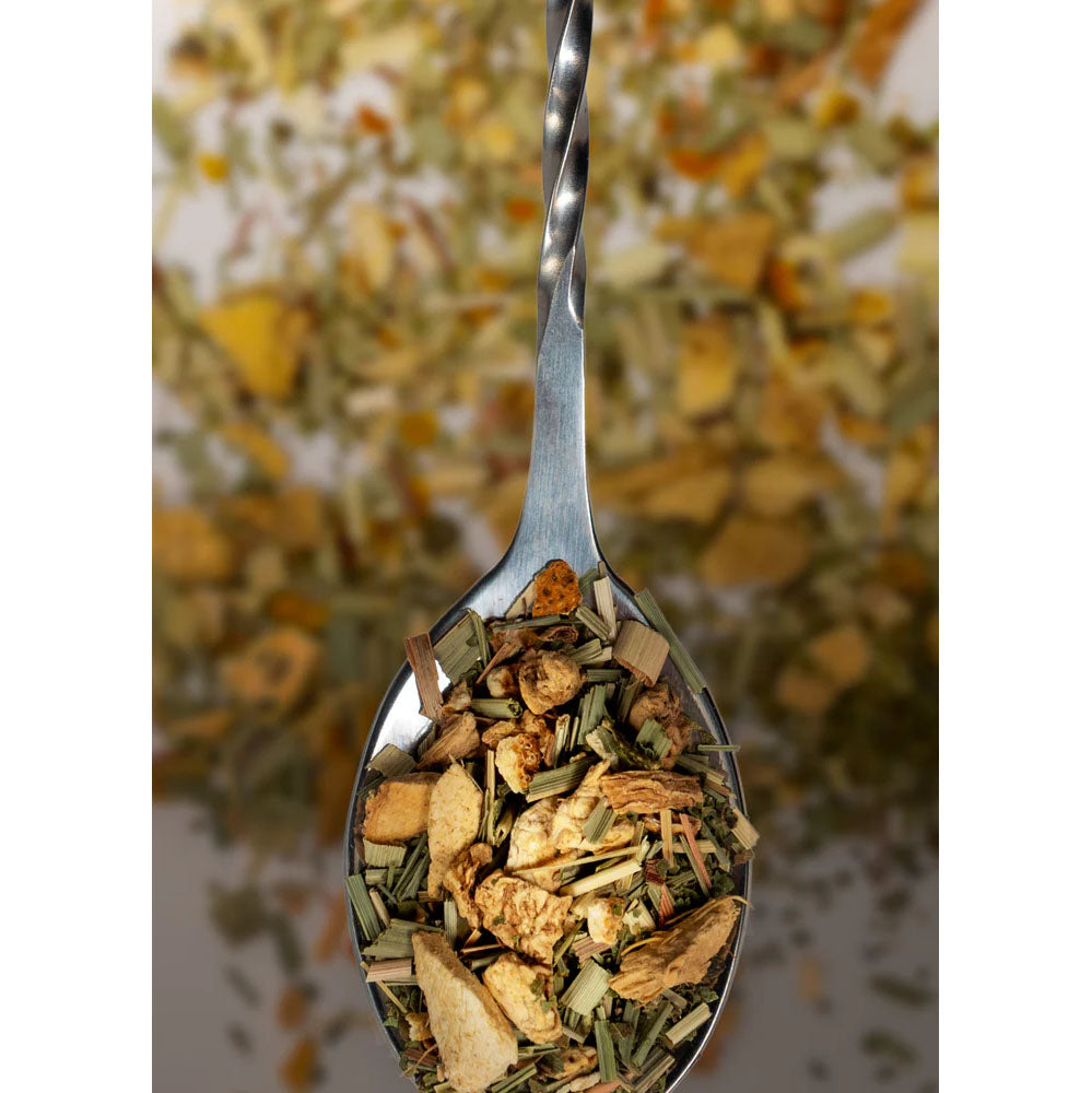 Lemongrass* 30%, Ginger* 30%, Lemon Verbena* 18%, Orange Peel*, Lemon Peel*. *Certified organic